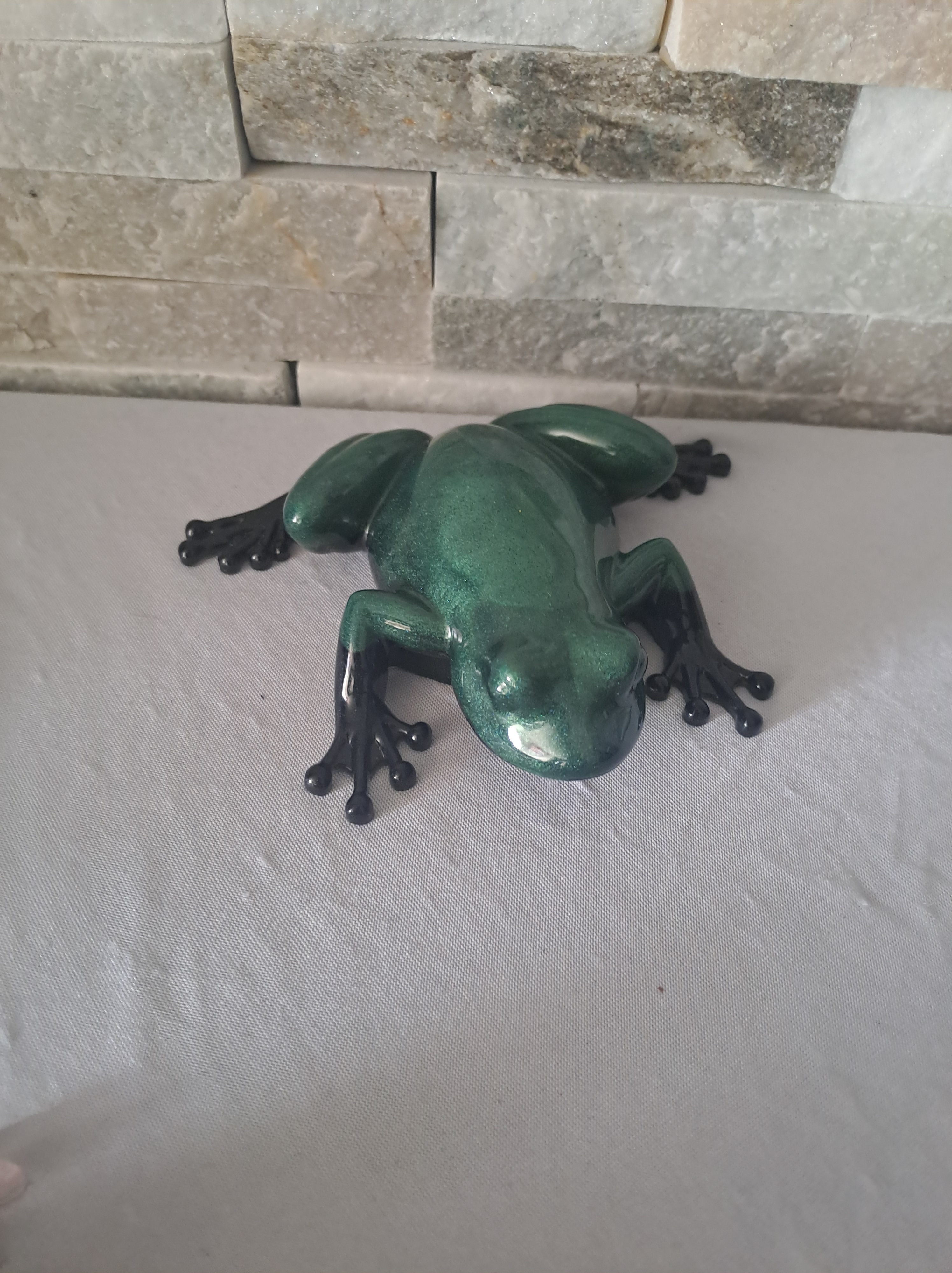 Figurine décorative en forme de grenouille réalisée en résine époxy. Disponible en plusieurs couleurs. Personnalisation possible pour les couleurs sans supplément.