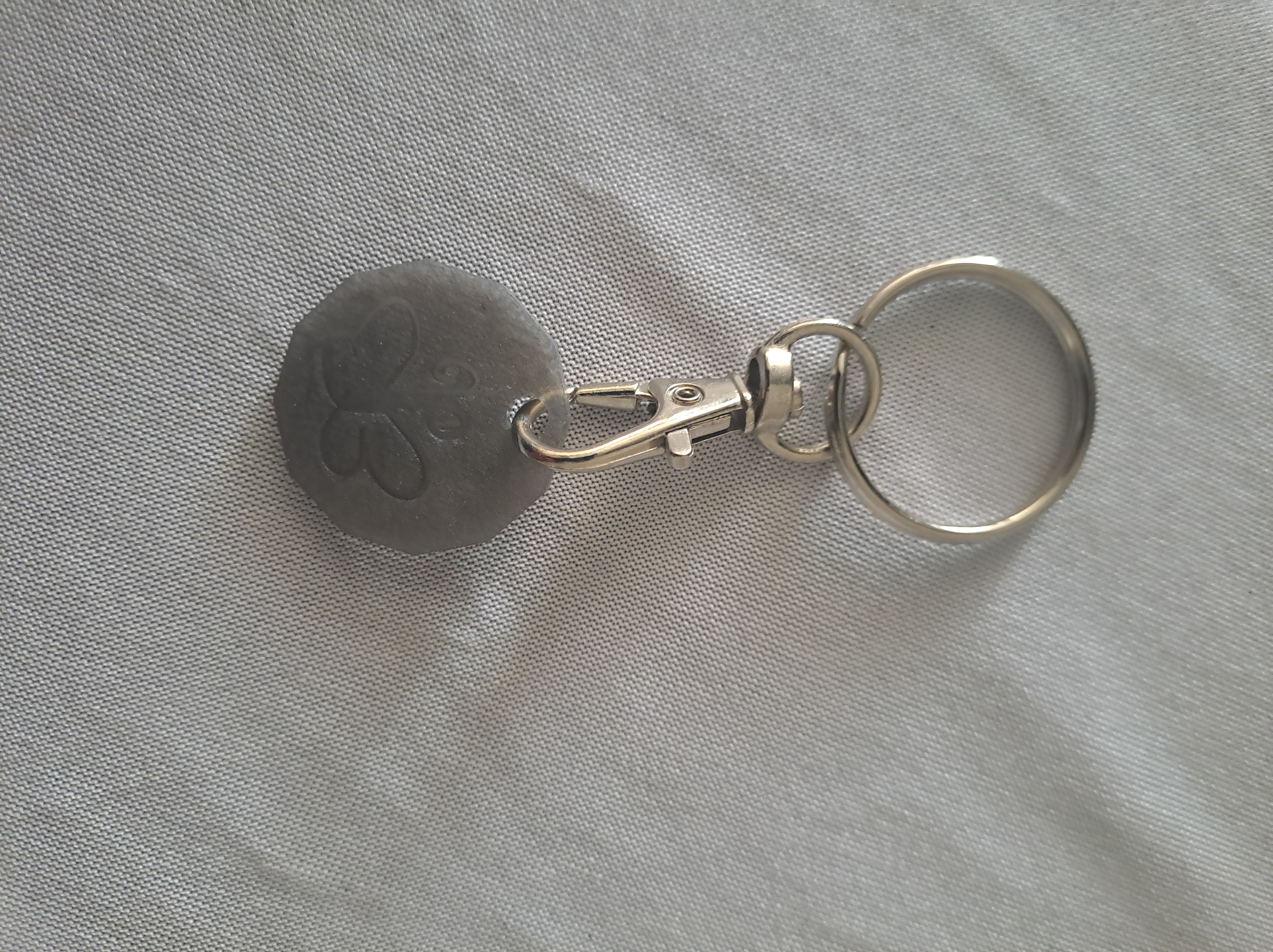 Jetton de caddie réalisée en résine époxy. Personnalisation possible pour les couleurs sans supplément.