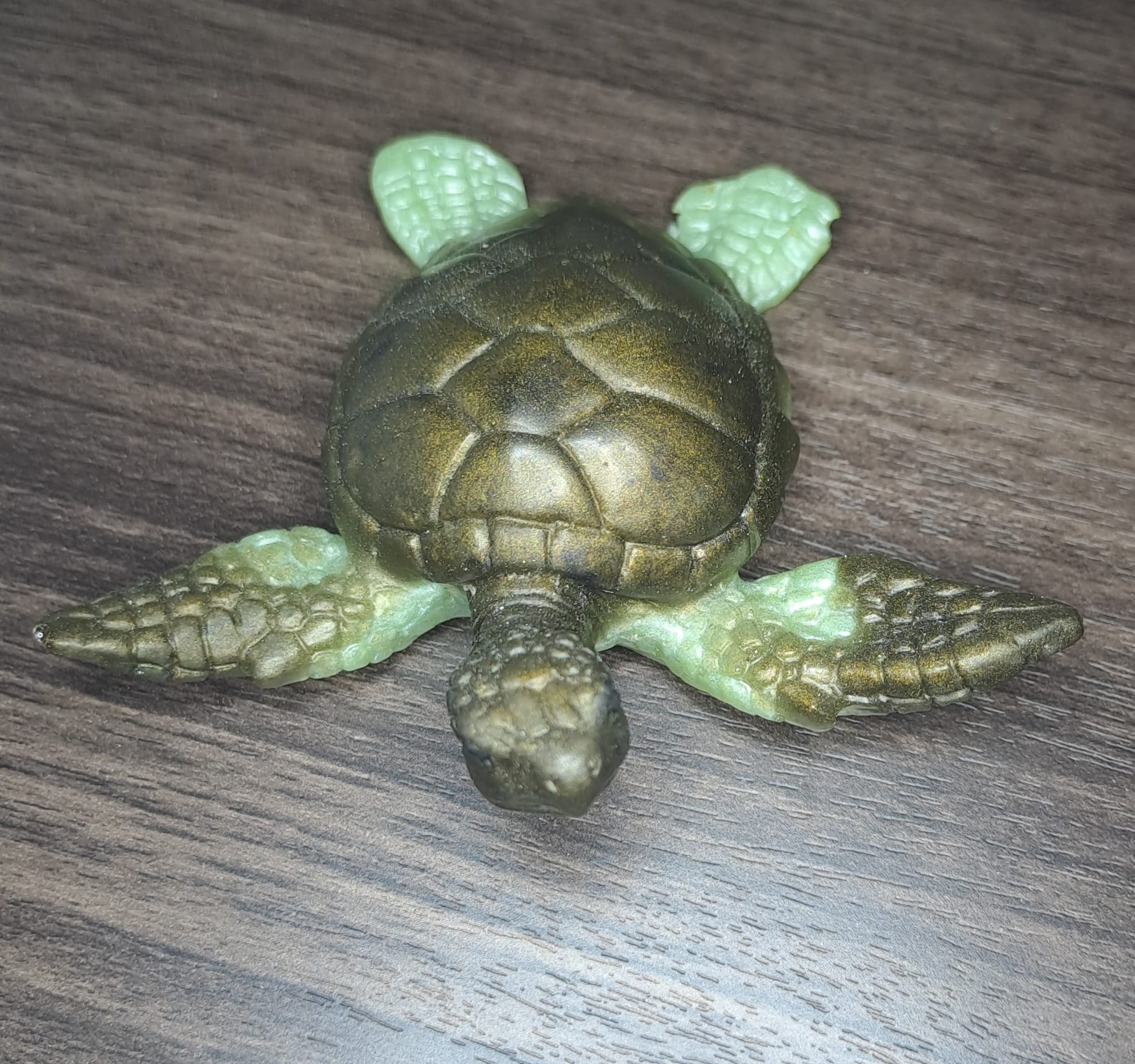 Figurine décorative en forme de tortue d’eau réalisée en résine époxy. Détails réalistes et finition brillante. Personnalisation possible pour les couleurs sans supplément.